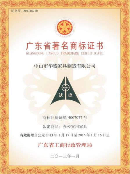 产品名称: 广东省著名商标证书 |