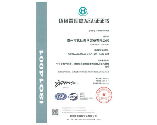 环境管理体系认证证书
