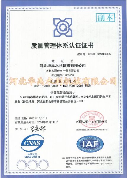 质量管理体系认证证书